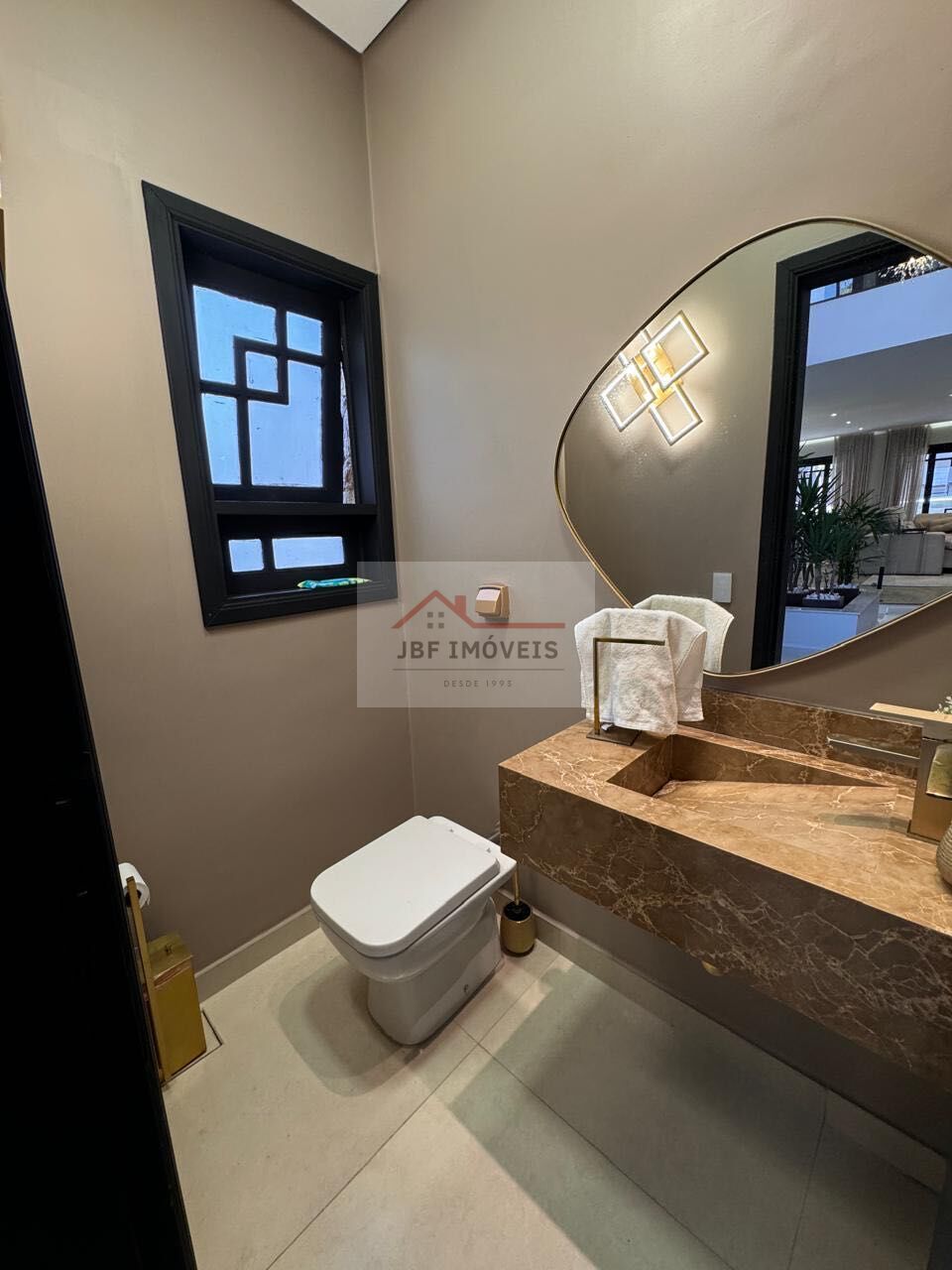 Sala iluminada com vista para jardim vertical, 3 ambientes e mais uma sala de estar com lareira até o teto. Lindo lavabo com Cuba esculpida de pedra nobre.